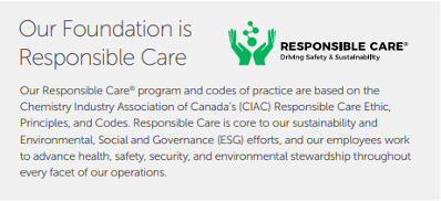 As a proud founding member of Responsible Care® (RC), our commitment to environmental stewardship and sustainable chemical manufacturing is deeply rooted in our operations and corporate philosophy.